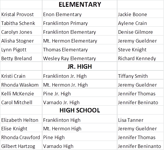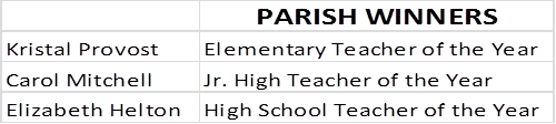 The 2015 teachers of the year were recognized at tonight’s meeting. The teacher was presented a plaque by their principal (designee). Superintendent Darrell Fairburn then presented a plaque to the parish winners. The Board congratulated all teachers.